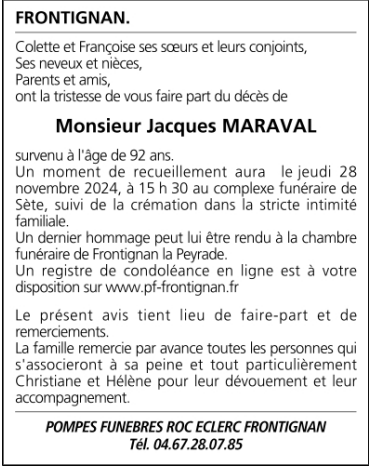 Décédé à Sète (34200, France) le dimanche 24 novembre 2024 à l'âge de 92 ans
