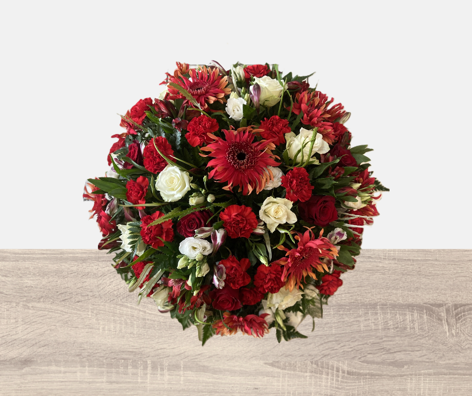 Photo non contractuelle | Grand dessus de cercueil rouge et blanc Fleurs fraîches.