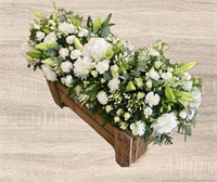 Photo non contractuelle | Dessus de cercueil blanc Fleurs fraîches.