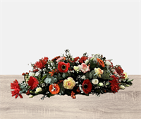 Photo non contractuelle | Dessus de cercueil rouge orangé Fleurs fraîches.